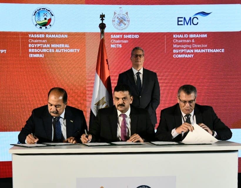 A Cooperation Protocol was signed between the Egyptian Mining Resources Authority (EMRA), The National Company for Telecommunications Services (NCTS) and Egypt Maintenance Company (EMC) to provide telecommunications solutions for EMRA through Tiba satellite. The agreement signed by the Chairman of EMRA Yasser Ramadan, the Chairman of NCTS Samy Shedied and the Chairman of EMC Khaled Ibrahim.