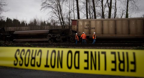 A Canadian National Railway Co. train carrying crude oil derailed and caught fire in a remote area of northern Ontario, blocking rail traffic between Toronto and Winnipeg, Manitoba.
